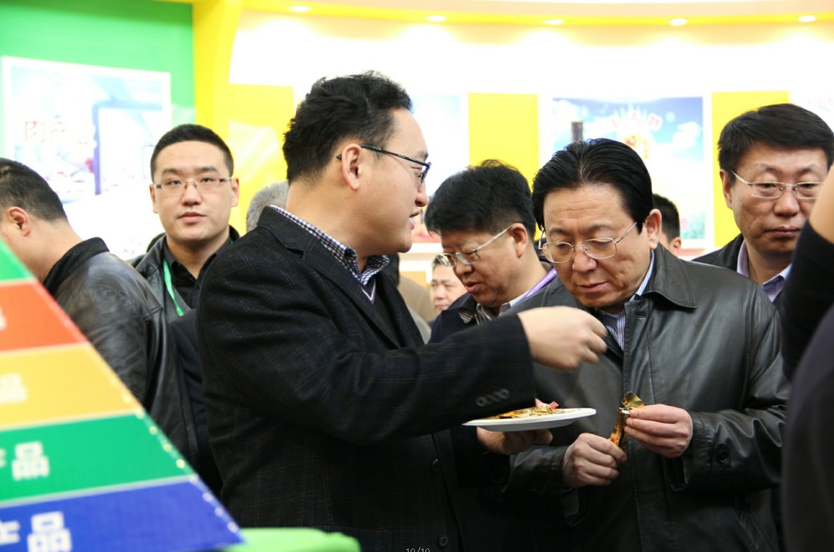 蒙羊牧業(yè)執(zhí)行總裁閆樹春為王玉明副主席和郭健廳長(zhǎng)介紹參展產(chǎn)品