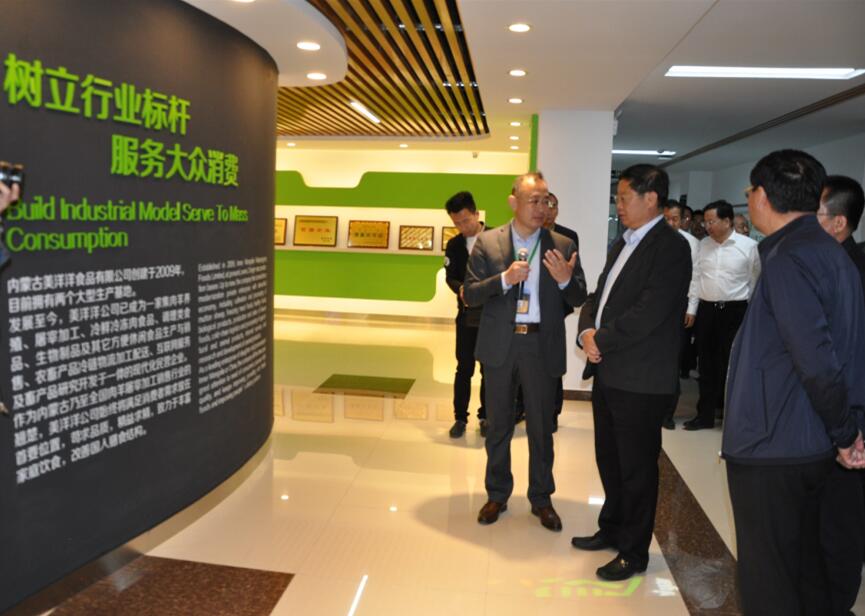 201759日下午,陽光明媚,綠意盎然,內(nèi)蒙古美洋洋食品有限公司廠區(qū)內(nèi)洋溢著一片欣欣向榮的景象。內(nèi)蒙古自治區(qū)政府副主席王波一行,在巴彥淖爾市政府市長(zhǎng)張曉兵等領(lǐng)導(dǎo)的陪同下,蒞臨公司參觀調(diào)研,總經(jīng)理張振民熱情接待并全程陪同講解。