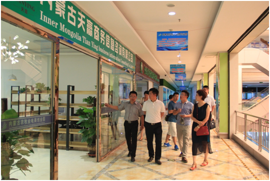 特種產(chǎn)業(yè)分會會長、內(nèi)蒙古宇航人高技術(shù)產(chǎn)業(yè)有限責(zé)任公司總經(jīng)理王尚義與協(xié)會常務(wù)秘書長劉俊青帶領(lǐng)會與企業(yè)代表參觀農(nóng)牧業(yè)電商創(chuàng)業(yè)園