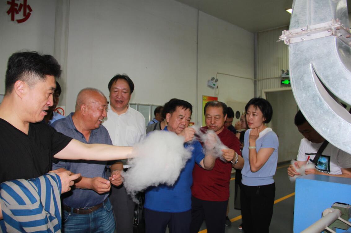 7月6日上午9時(shí),與會(huì)人員在程旭東董事長(zhǎng)的引領(lǐng)下,共同參觀了赤峰東榮集團(tuán)的生產(chǎn)車間及生活園區(qū)。赤峰東榮集團(tuán)成立于2014122日,現(xiàn)有員工1011人,占地面積4.36萬平方米,機(jī)器加工設(shè)備1818臺(tái)套。主要從事羊絨收購,加工生產(chǎn)水洗絨,無毛絨分梳,紡紗,羊絨衫、羊絨圍巾生產(chǎn),羊絨分梳設(shè)備研發(fā)。年加工無毛絨450噸,生產(chǎn)羊絨衫80萬件,羊絨圍巾30萬件,產(chǎn)品銷往意大利、瑞士、英國、美國、日本和香港地區(qū)。20172月公司獲得法國國際生態(tài)認(rèn)證中心(ECOCERT)頒發(fā)歐盟標(biāo)準(zhǔn)“有機(jī)羊絨國際認(rèn)證(GOTS)”,同年正式被世界羊絨駝絨制造商協(xié)會(huì)“CCMI”組織吸收為會(huì)員。