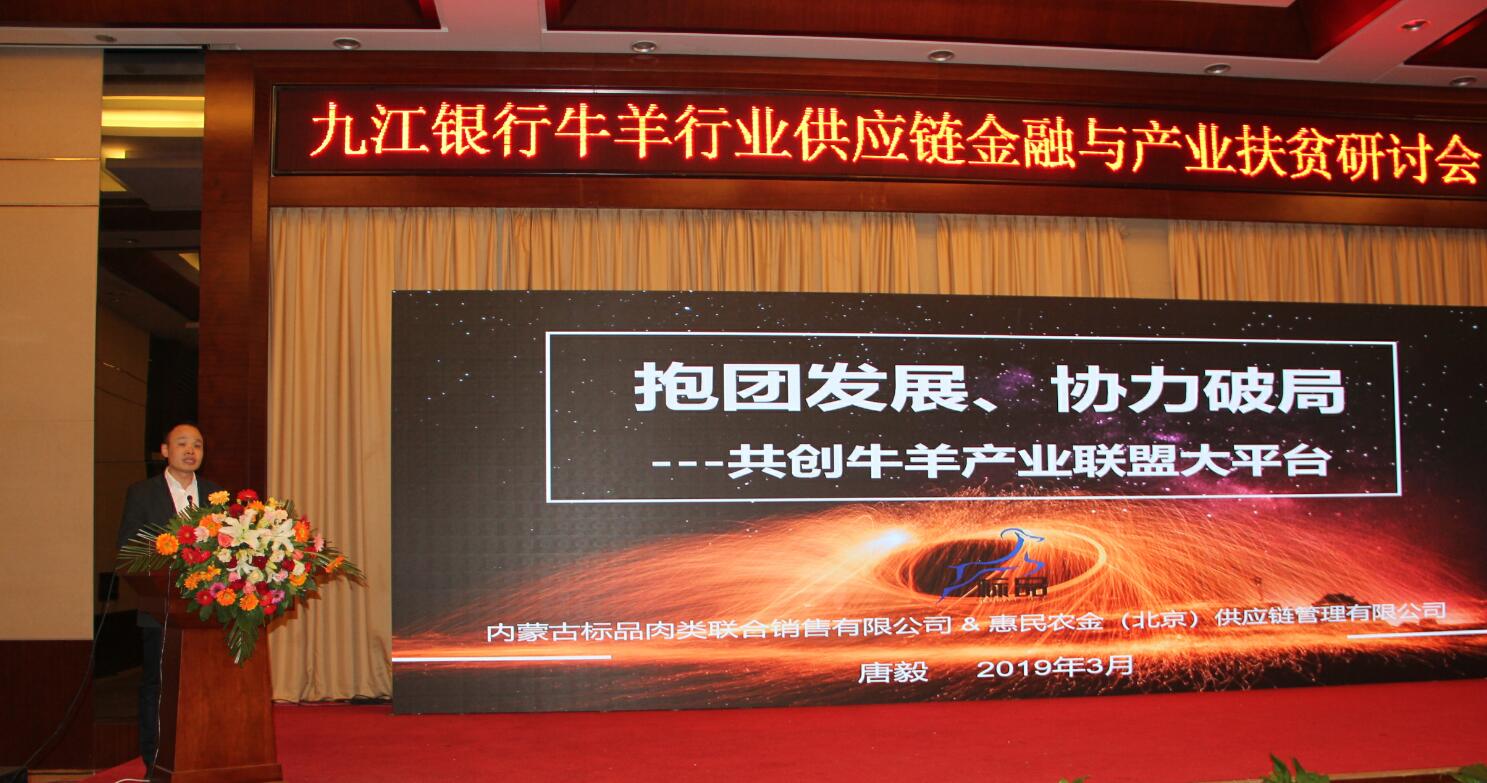 2019年3月15日,由九江銀行股份有限公司、內(nèi)蒙古農(nóng)牧業(yè)產(chǎn)業(yè)化龍頭企業(yè)協(xié)會(huì)、內(nèi)蒙古標(biāo)品肉類聯(lián)合銷售有限公司聯(lián)合主辦,主題為“產(chǎn)業(yè)聯(lián)盟謀發(fā)展,科技金融惠三農(nóng)”——牛羊行業(yè)供應(yīng)鏈金融與產(chǎn)業(yè)扶貧研討會(huì)在江西省九江市廬山西海隆重召開。