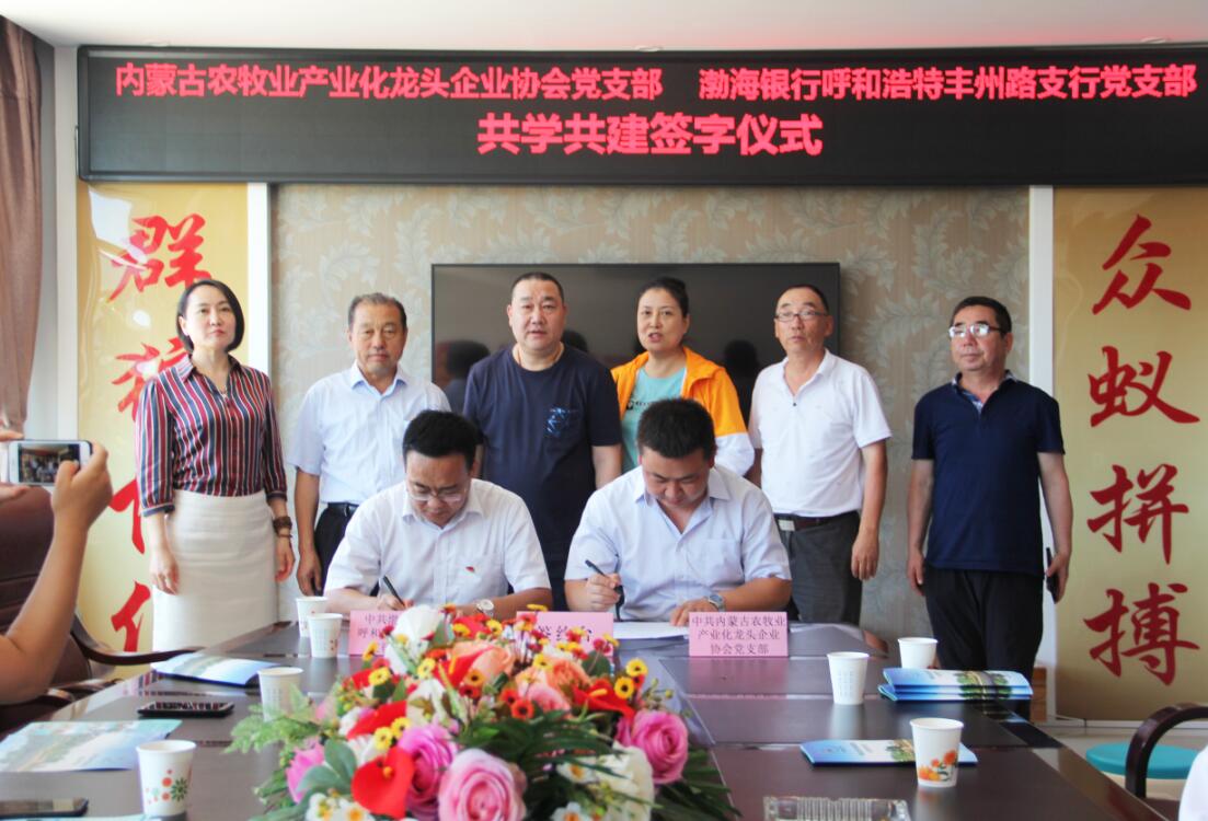 活動(dòng)過程中,為創(chuàng)造性地推進(jìn)黨組織“共學(xué)共建”結(jié)對(duì)工作,圍繞新時(shí)代黨的建設(shè)總要求,內(nèi)蒙古農(nóng)牧業(yè)產(chǎn)業(yè)化龍頭企業(yè)協(xié)會(huì)黨支部和渤海銀行呼和浩特豐州路支行黨支部簽訂了《共學(xué)共建結(jié)對(duì)協(xié)議》。通過結(jié)對(duì)共建,在弘揚(yáng)社會(huì)正能量、加強(qiáng)愛國(guó)主義教育等方面樹立新典型,力爭(zhēng)在構(gòu)建銀企合作關(guān)系等方面取得新突破。