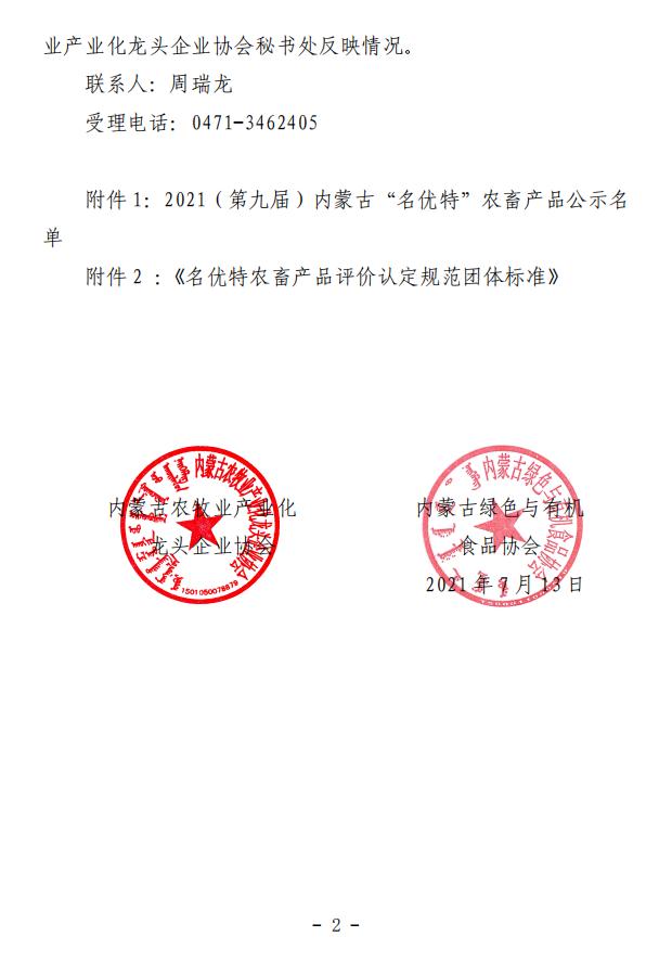 2021(第九屆)內(nèi)蒙古“名優(yōu)特”農(nóng)畜產(chǎn)品認(rèn)定公示名單