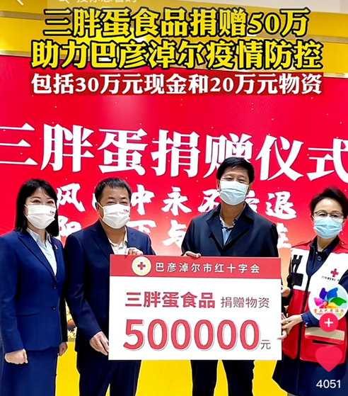 32、會(huì)員單位-內(nèi)蒙古三胖蛋食品有限公司:三胖蛋再次向紅十字會(huì)捐贈(zèng)抗疫資金及抗疫物資,積極配合政府,助力疫情防控工作,堅(jiān)持盡自己所能為家鄉(xiāng)助力,為社會(huì)提供正能量,發(fā)揚(yáng)民族企業(yè)的光和熱。