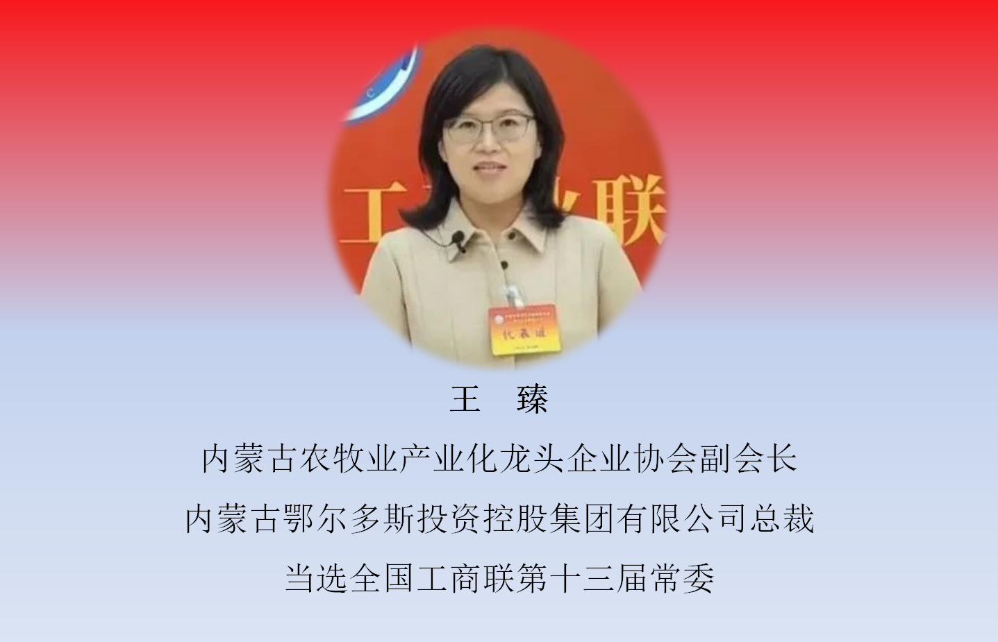 12月11日,中國工商業(yè)聯合會第十三次全國代表大會在北京召開,大會選舉產生了中華全國工商業(yè)聯合會第十三屆執(zhí)行委員會。內蒙古農牧業(yè)產業(yè)化龍頭企業(yè)協會4家會員單位負責人當選新一屆常委和執(zhí)委。