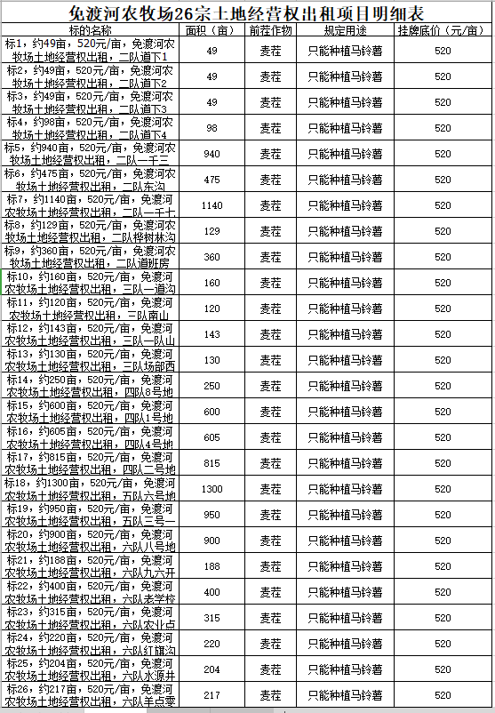 項(xiàng)目一:呼倫貝爾農(nóng)墾免渡河農(nóng)牧場(chǎng)有限公司26耕地經(jīng)營(yíng)權(quán)出租項(xiàng)目