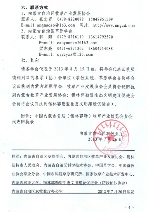 關(guān)于召開中國(guó)內(nèi)蒙古首屆(錫林郭勒)牧草業(yè)博覽會(huì)的通知