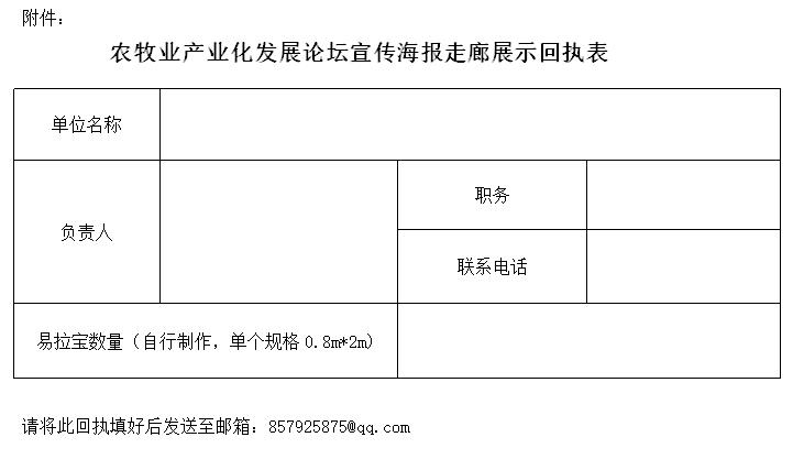 農(nóng)牧業(yè)產(chǎn)業(yè)化發(fā)展論壇宣傳海報(bào)走廊展示回執(zhí)表.doc