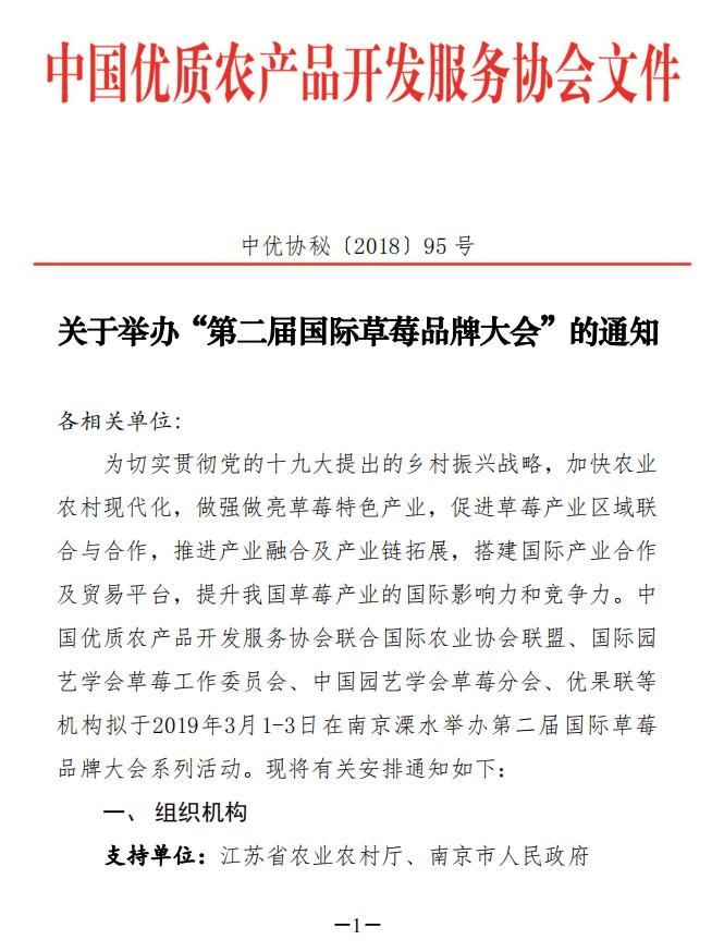 關于舉辦“第二屆國際草莓品牌大會”的通知
