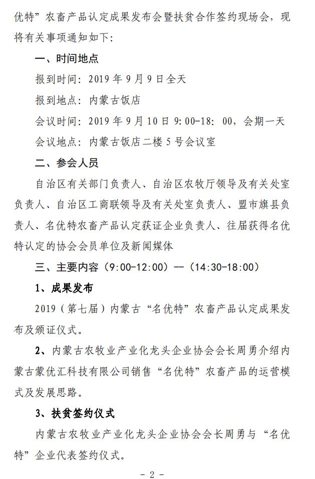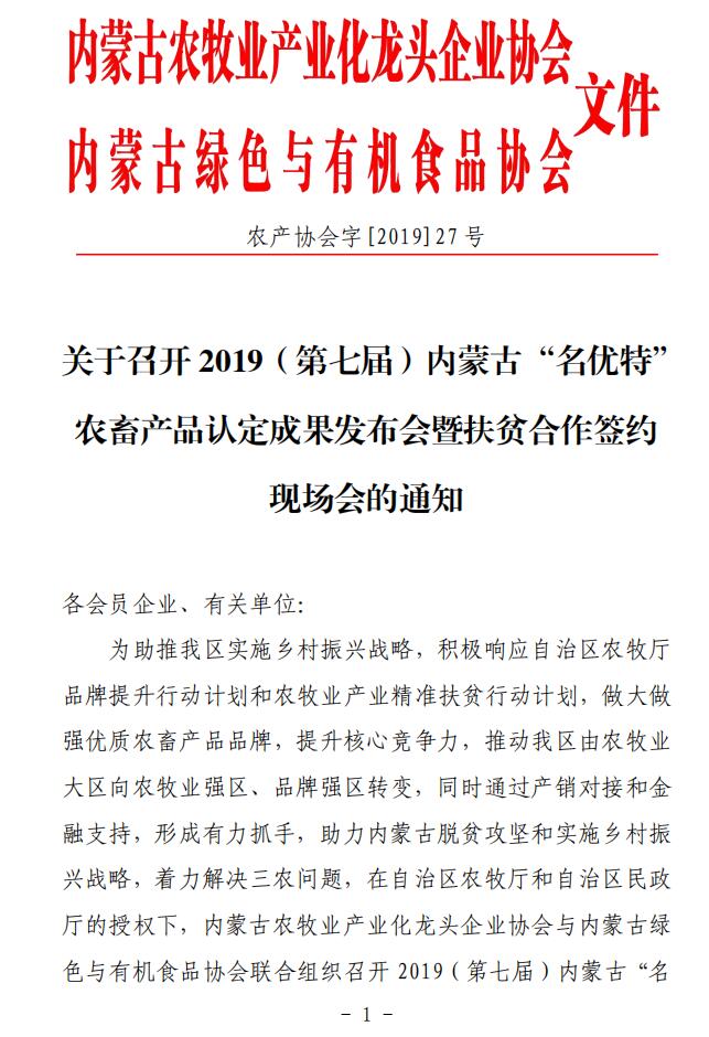 關(guān)于召開 2019(第七屆)內(nèi)蒙古“名優(yōu)特” 農(nóng)畜產(chǎn)品認(rèn)定成果發(fā)布會(huì)暨扶貧合作簽約 現(xiàn)場(chǎng)會(huì)的通知