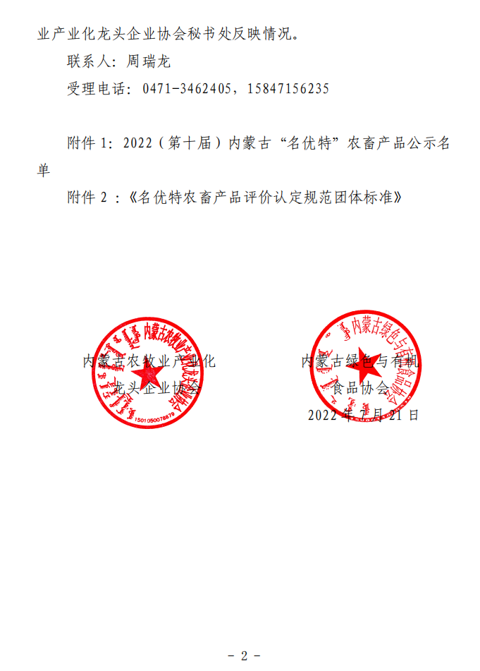 2022第十屆內(nèi)蒙古“名優(yōu)特”農(nóng)畜產(chǎn)品認定公示名單