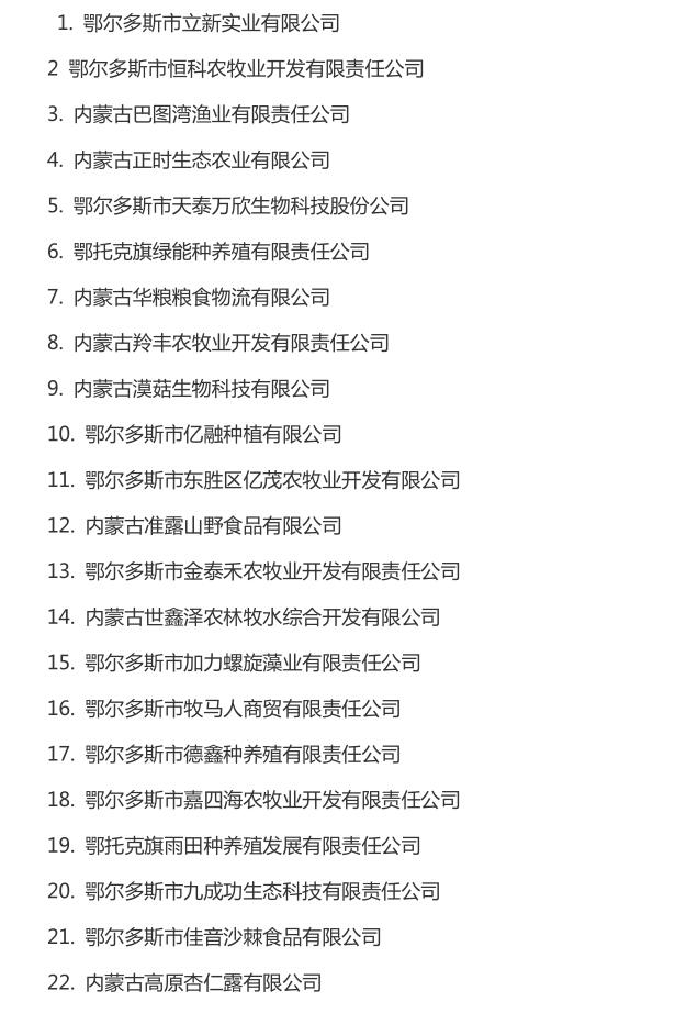 企業(yè)名稱:截止2016年末自治區(qū)級(jí)農(nóng)牧業(yè)產(chǎn)業(yè)化 重點(diǎn)龍頭企業(yè)名單​