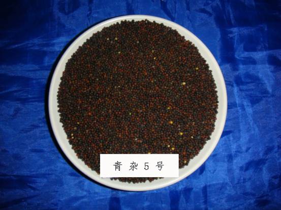 青雜5號品種為甘藍型春性質不育三系雜交種。全生育期134天左右,與對照青雜1號相當。幼苗半直立,葉色深綠,有裂葉23對,葉緣波狀,臘粉少,無刺毛?;ò挈S色,花冠橢圓形,花瓣側疊。株高171厘米左右,分枝部位62厘米左右,勻生分枝。平均單株有效角果數221.2個,每角粒數25.7粒,千粒重3.9。