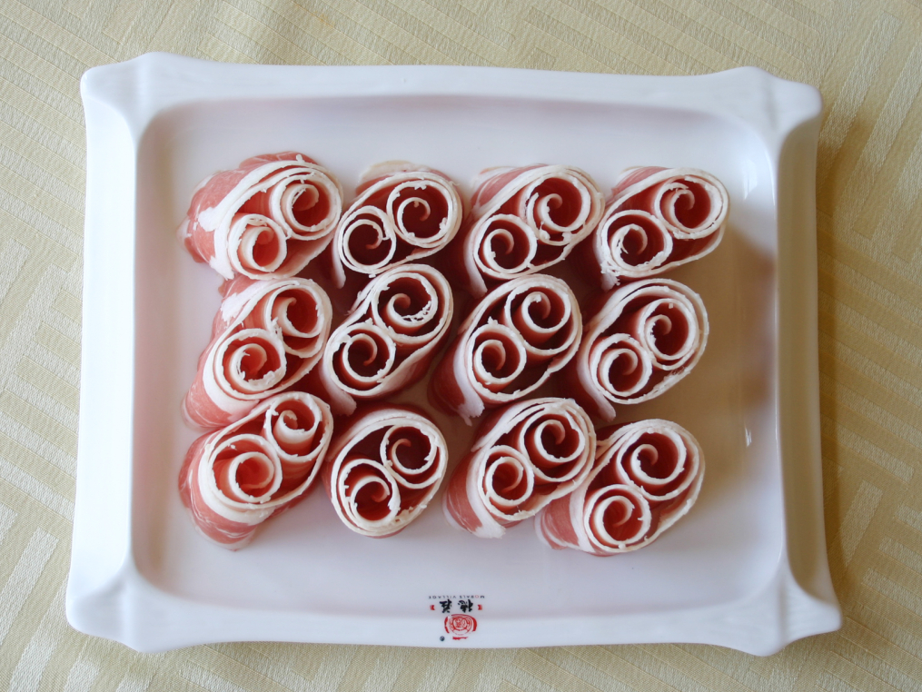 二十五、尾油卷:選用原料:去掉云皮、血線之后精選的羊尾油,經(jīng)過特殊工藝之后,卷制而成。其特點(diǎn)是切片后薄如紙、勻如晶,口感不膻不膩。