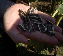 屬中晚熟種,生育期105天,株高180200cm,適應(yīng)性廣,種皮薄,易抓苗;抗病性強(qiáng)。花盤直徑 18.521cm,單盤粒重151克左右,盤口緊密結(jié)實(shí);平均百粒重18.31克,籽粒飽滿,結(jié)實(shí)率高;籽粒長2.0cm以上,寬0.9cm,種皮黑色帶白邊間有白條紋,顏色較為黑亮。