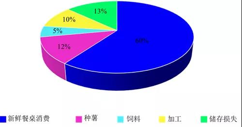 中國(guó)馬鈴薯總消費(fèi)量基本穩(wěn)定,但預(yù)計(jì)未來十年將略有增長(zhǎng)。業(yè)內(nèi)人士估計(jì),中國(guó)60%的馬鈴薯是在家里或餐館用于鮮食消費(fèi)。這與幾年前相比并沒有變化,因?yàn)轳R鈴薯仍然是中國(guó)消費(fèi)者的主食。中國(guó)馬鈴薯總量的約10%用于加工業(yè)消費(fèi),12%用于種薯消費(fèi),5%作為飼料消費(fèi),儲(chǔ)藏造成的損失約為13%。根據(jù)《中國(guó)農(nóng)業(yè)展望報(bào)告》預(yù)測(cè),鮮食消費(fèi)的馬鈴薯將年增長(zhǎng)0.3%,加工消費(fèi)的馬鈴薯將年增長(zhǎng)1.3%,飼料消費(fèi)將年增長(zhǎng)0.5%,種薯消費(fèi)和儲(chǔ)藏?fù)p失每年將分別增加1.1%(圖3)。